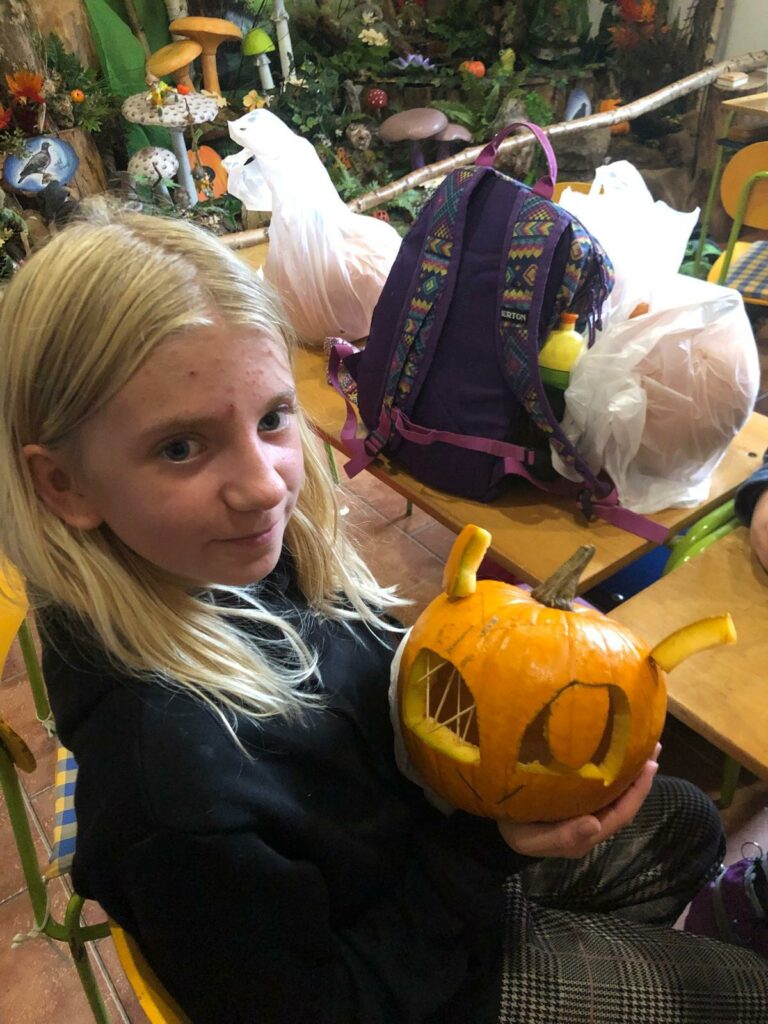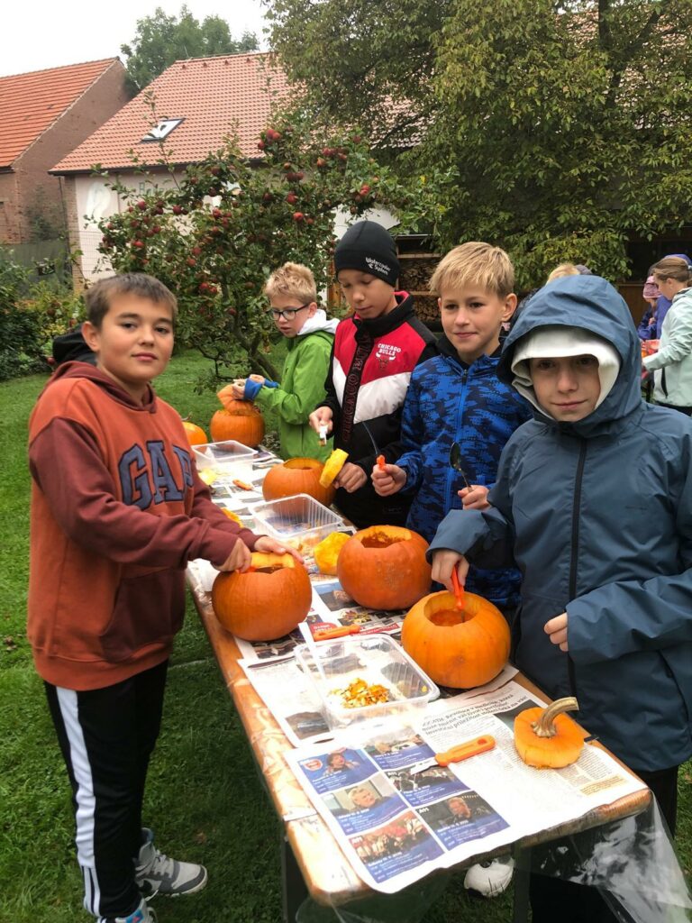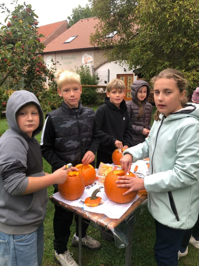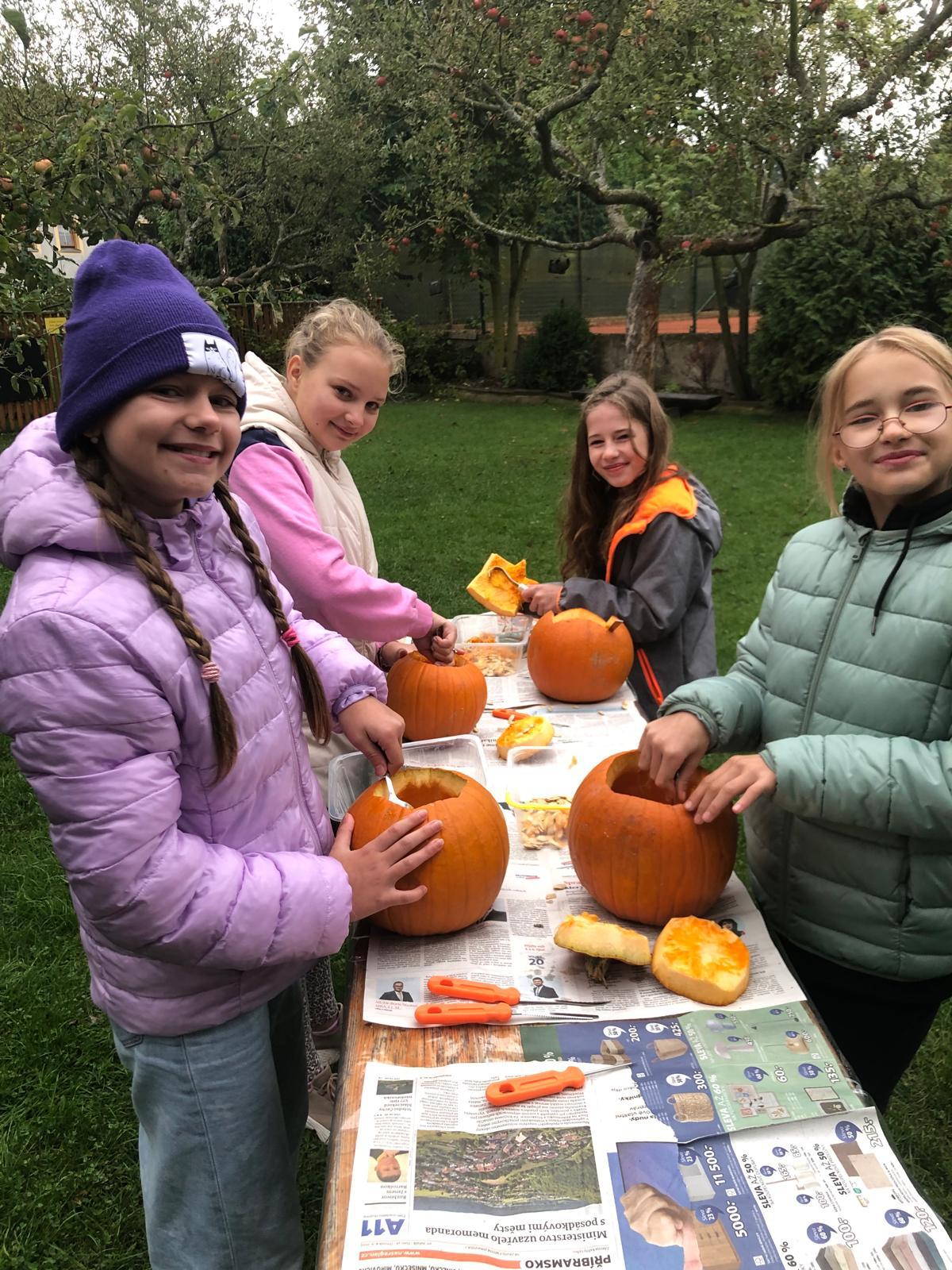 V první části programu si každý vydlabal a vyřezal svoji dýni, kterou si potom odnesl domů.