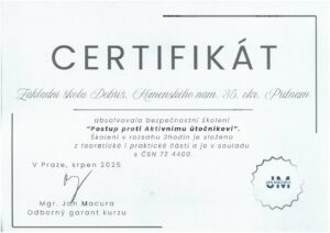 V srpnu 2025 absolvovali zaměstnanci školy bezpečnostní školení, které se skládalo z teoretické i praktické části.