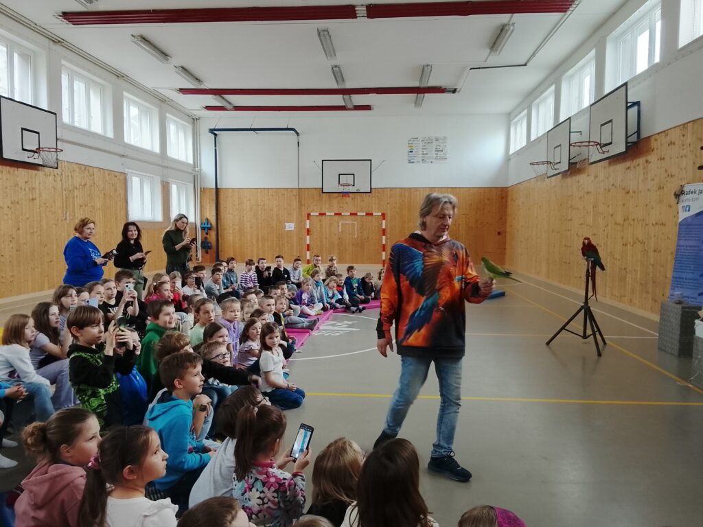 Ve školní družině se uskutečnila zábavná a zároveň poučná akce věnovaná papouškům. Děti se dozvěděly, kde papoušci žijí, čím se živí, že dokážou napodobovat lidskou řeč, jak doma o ně správně pečovat, že jsou velmi inteligentní a společenská zvířata, která potřebují hodně pozornosti.