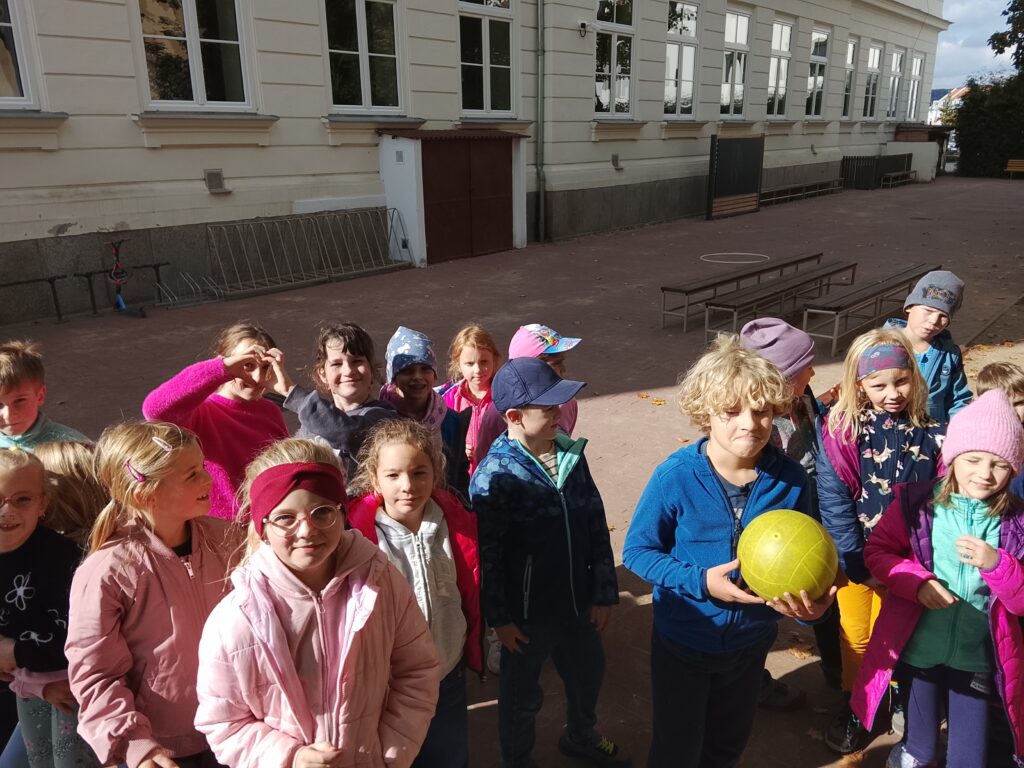 V pátek 3. 10. se opět sešly děti 2. a 4. oddělení ŠD, aby si zahrály společně podzimní  šipkovanou. Trasa byla na louce a