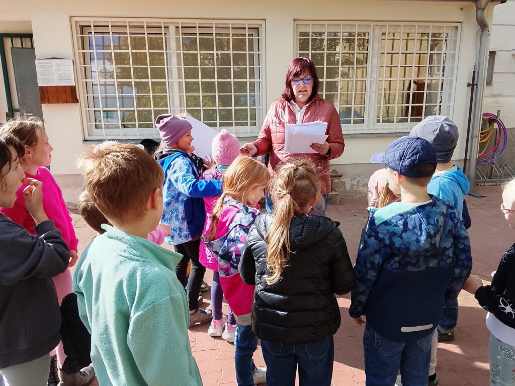 v okolí gymnázia, kde skupinky odpovídaly na různé otázky. Největším oříškem byla otázka:,, Co je zemlbába?“  Všechny pobavila odpověď:,, Zemědělská bába“.