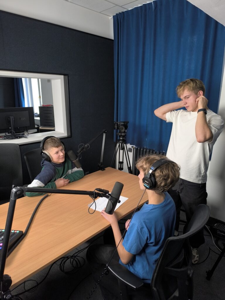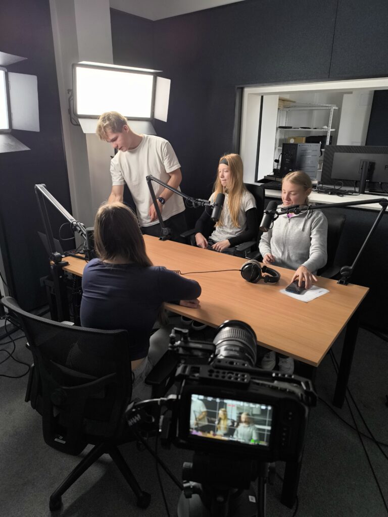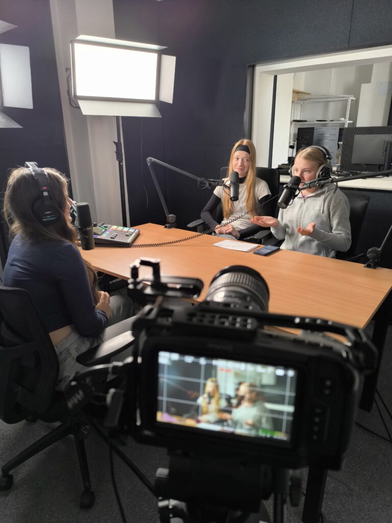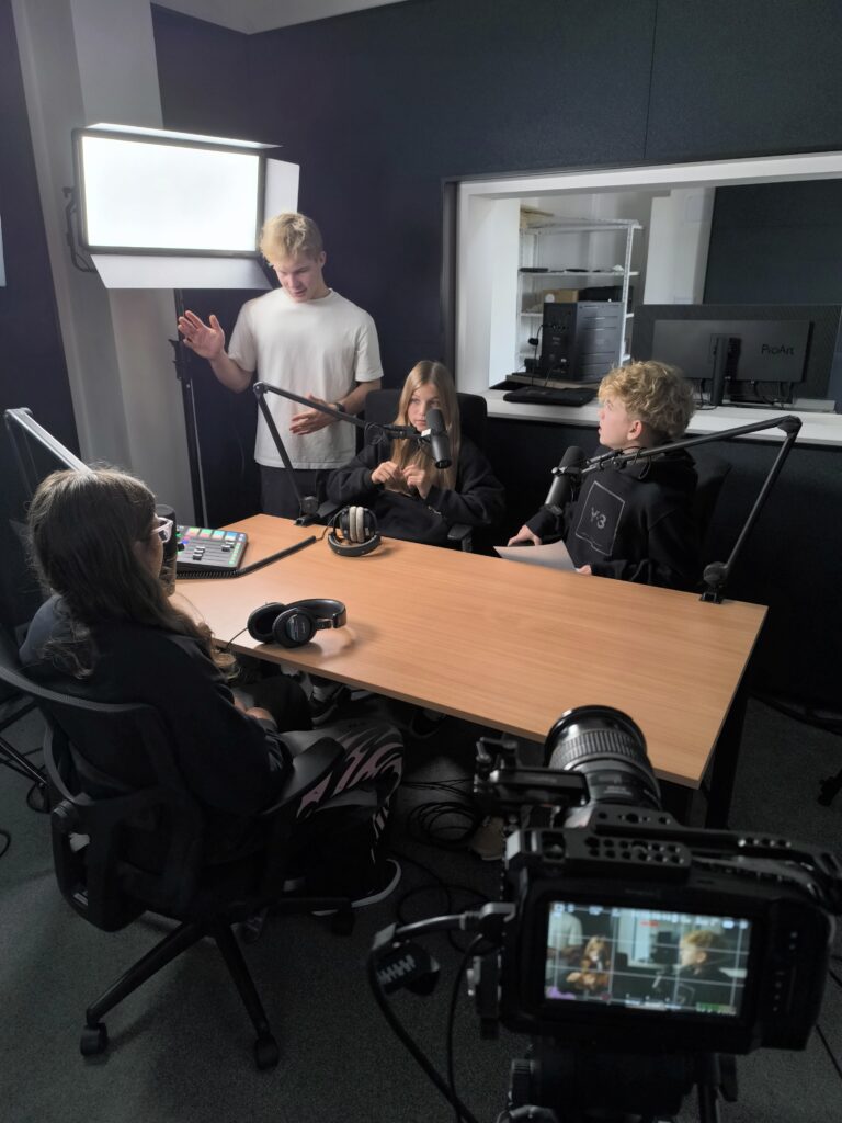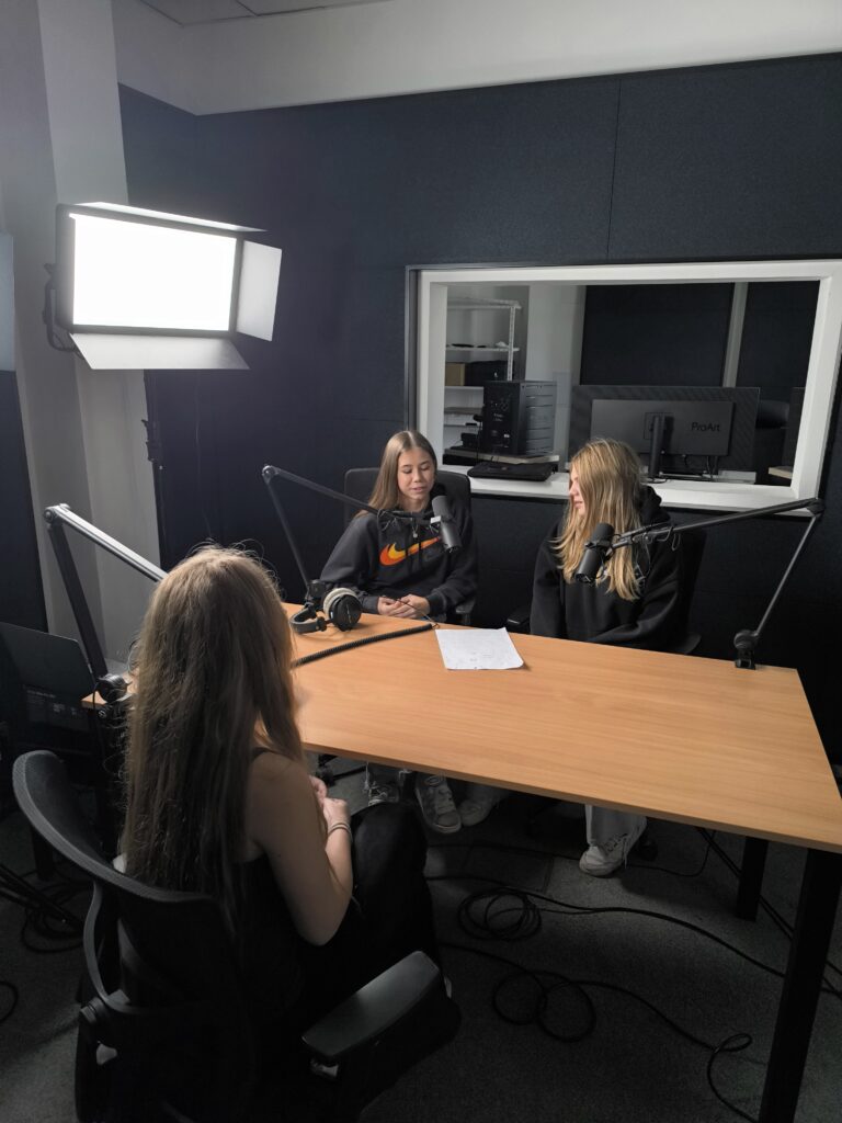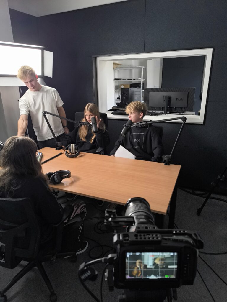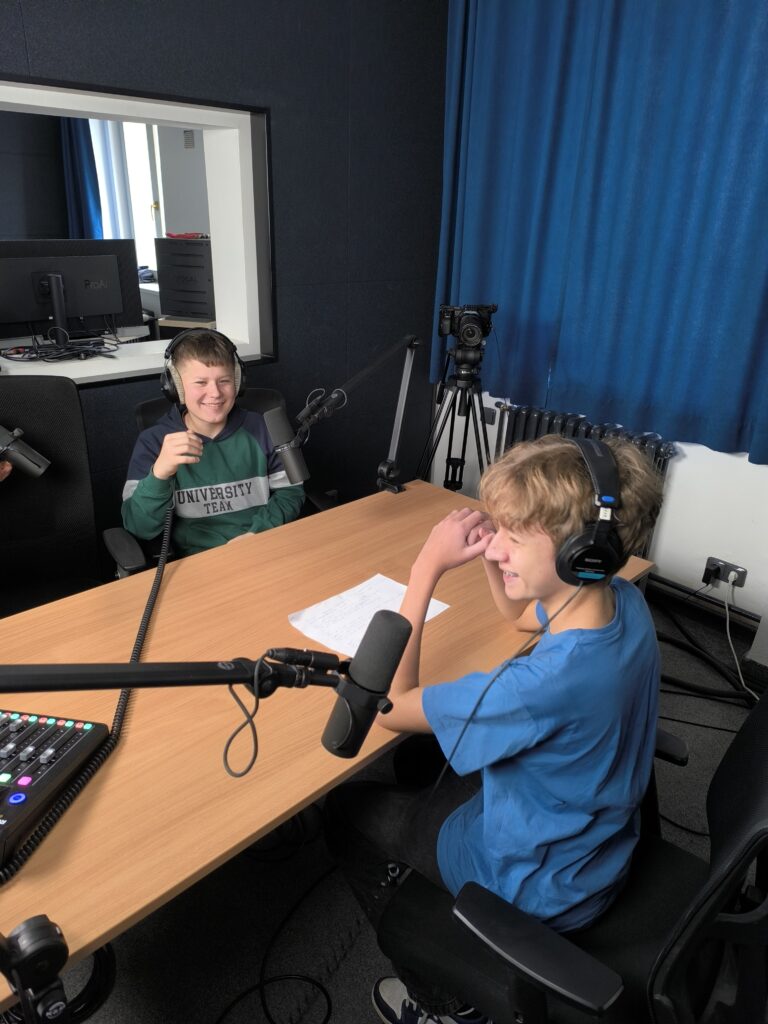 Součástí programu byl také praktický workshop, při kterém si naši žáci mohli na vlastní kůži vyzkoušet, jaké to je stát za mikrofonem a podílet se na tvorbě podcastu. Zjistili, že příprava i samotné nahrávání vyžaduje týmovou spolupráci, kreativitu a pečlivou přípravu. Všem našim týmům se dařilo skvěle a za chvilku se všichni za mikrofonem a před kamerou cítili jako doma.