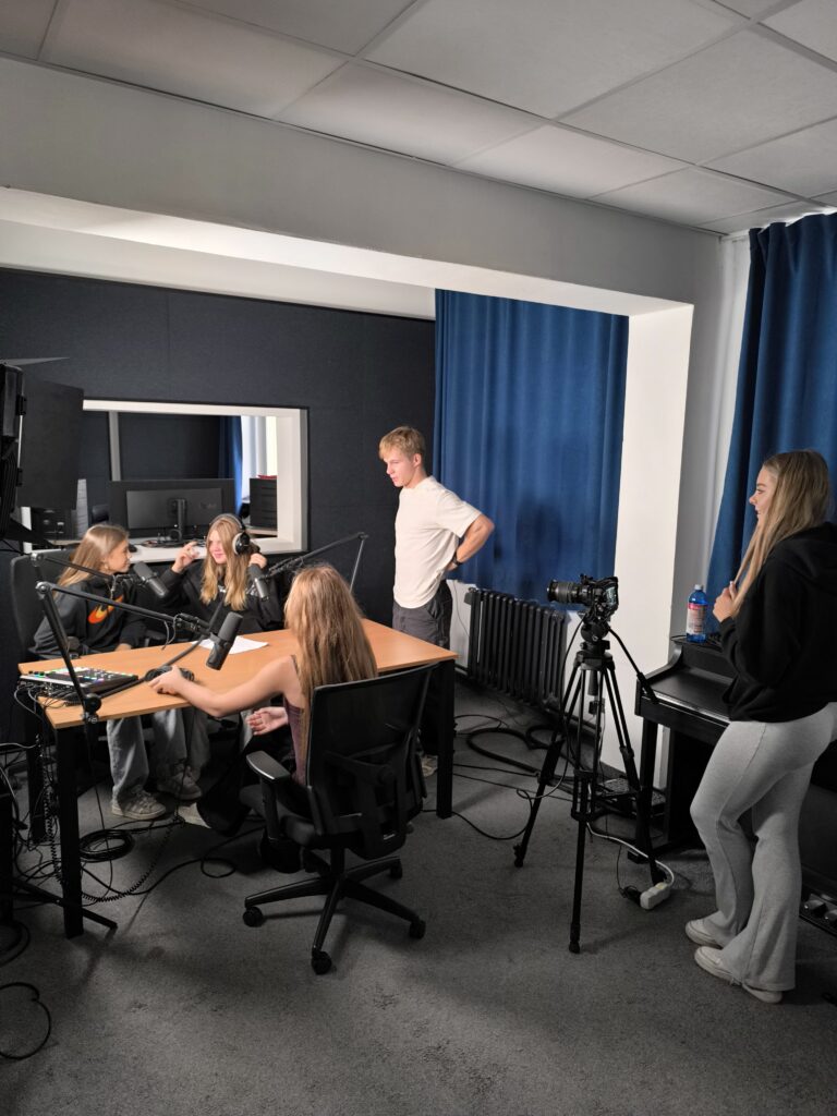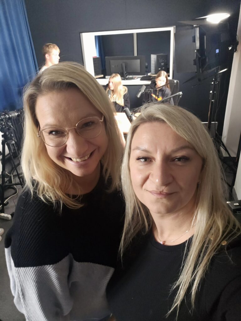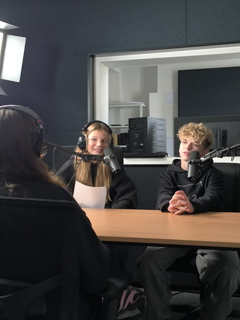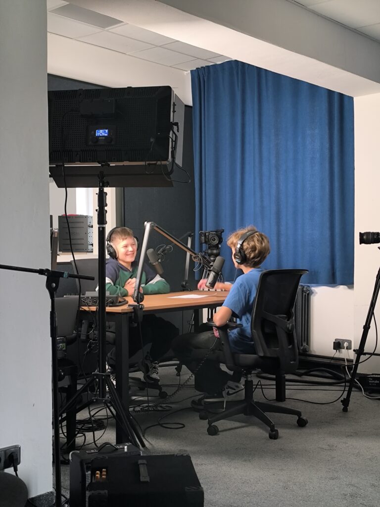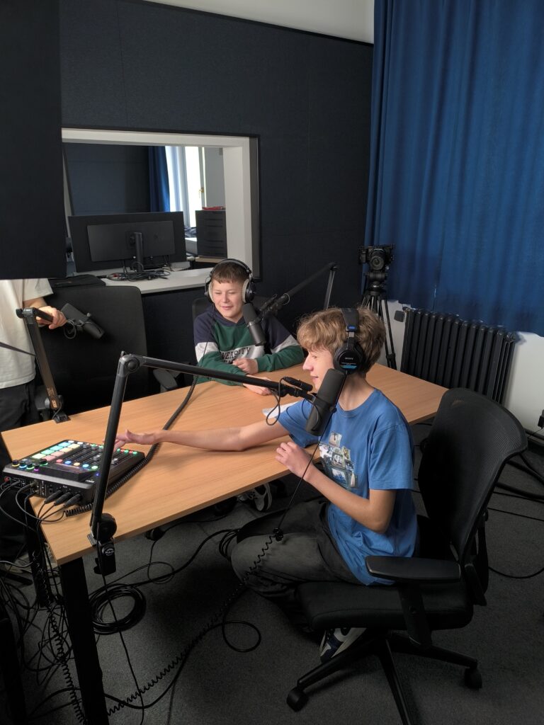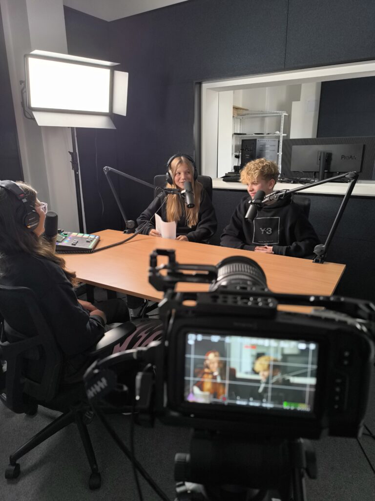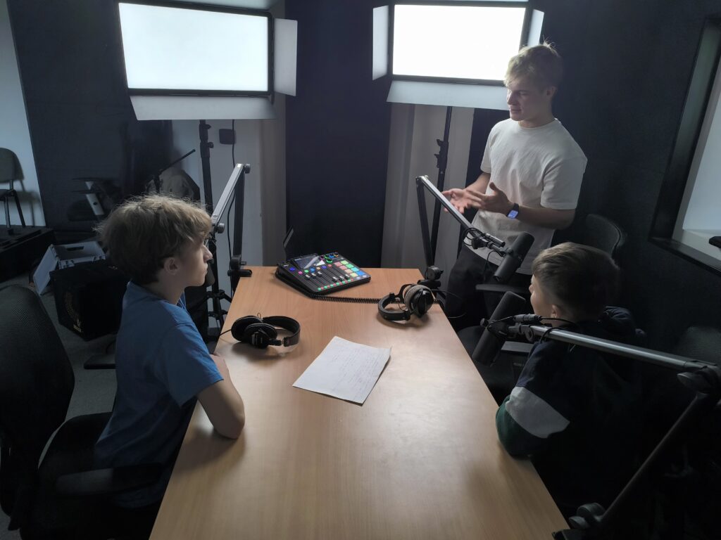 Součástí programu byl také praktický workshop, při kterém si naši žáci mohli na vlastní kůži vyzkoušet, jaké to je stát za mikrofonem a podílet se na tvorbě podcastu. Zjistili, že příprava i samotné nahrávání vyžaduje týmovou spolupráci, kreativitu a pečlivou přípravu. Všem našim týmům se dařilo skvěle a za chvilku se všichni za mikrofonem a před kamerou cítili jako doma.