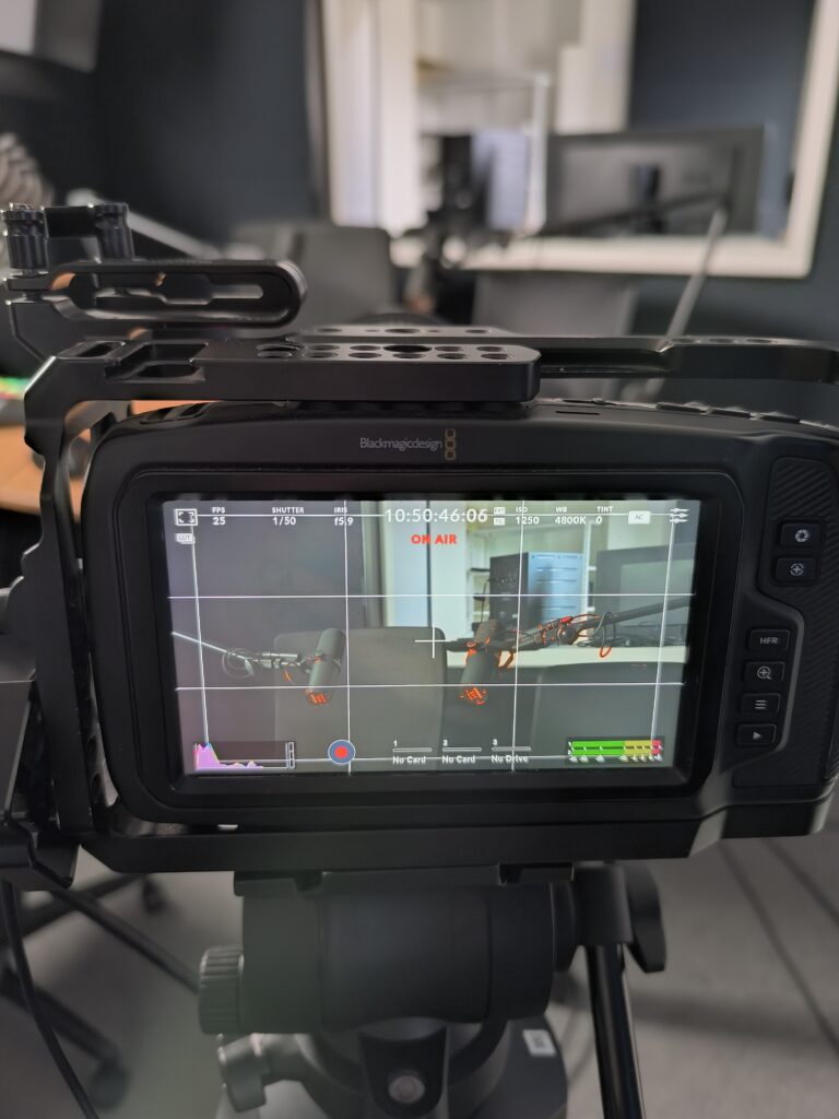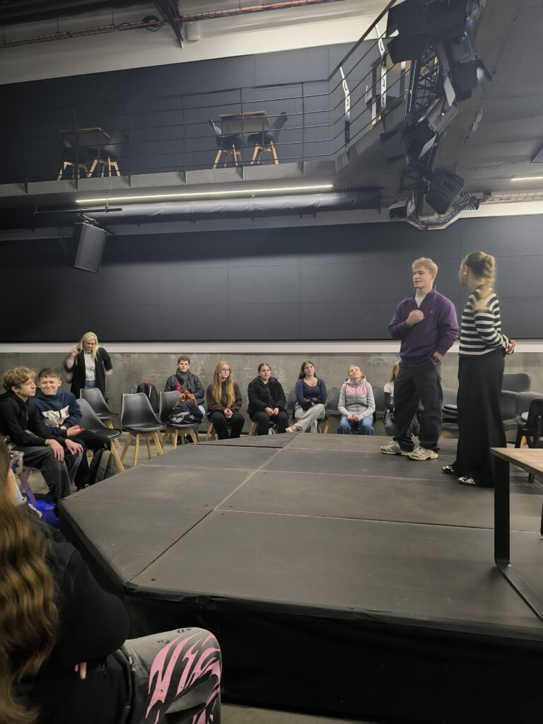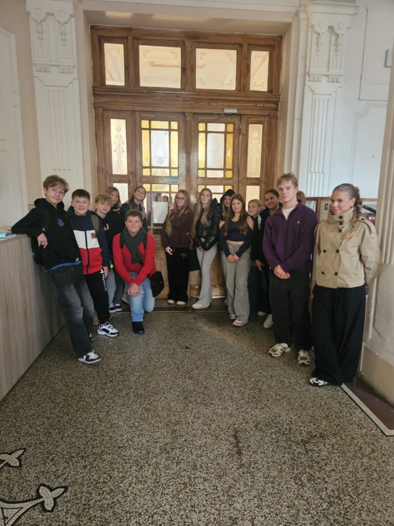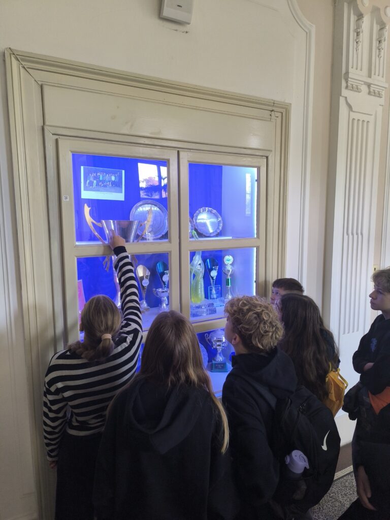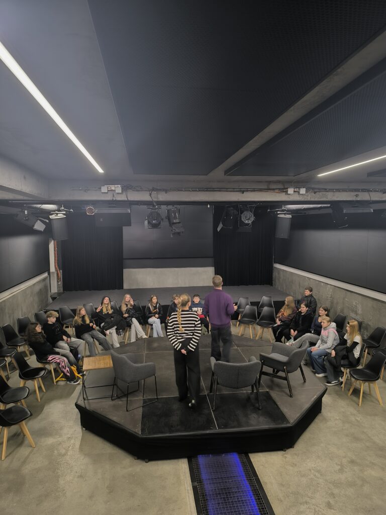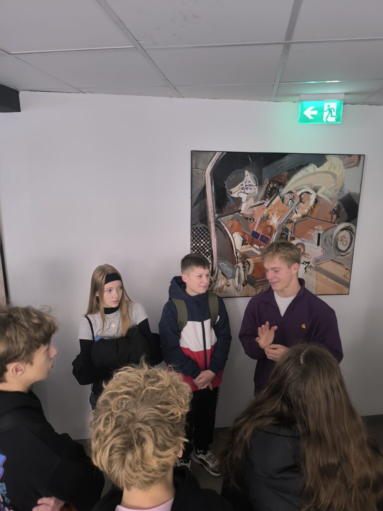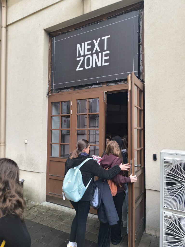 Po příjezdu do areálu školy se nás ujali dva šikovní studenti  – Ondra a Gisele, kteří nás s nadšením provedli celým areálem školy. Ukázali nám učebny s moderním technickým vybavením, školní posilovnu, VR studio i nahrávací studio, kde vzniká školní podcast s názvem ON POINT. Ten si studenti sami připravují, nahrávají i stříhají a zvou si do něj velmi zajímavé hosty z různých oblastí.