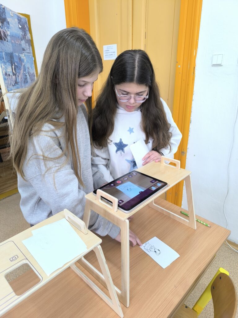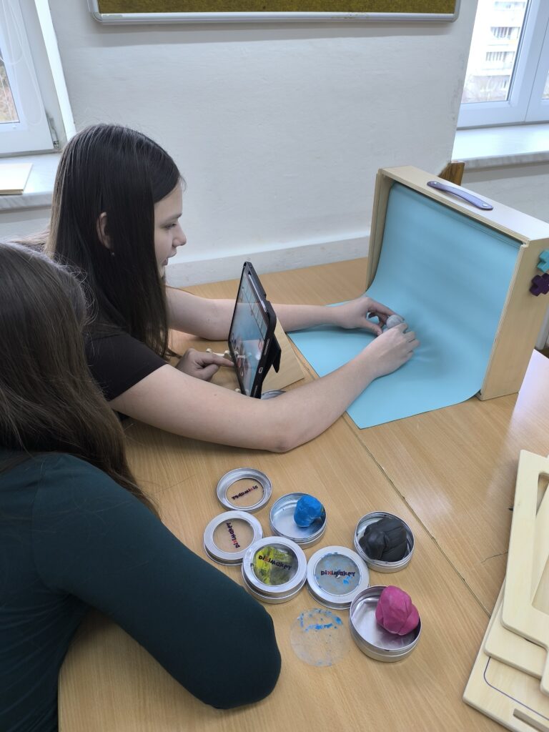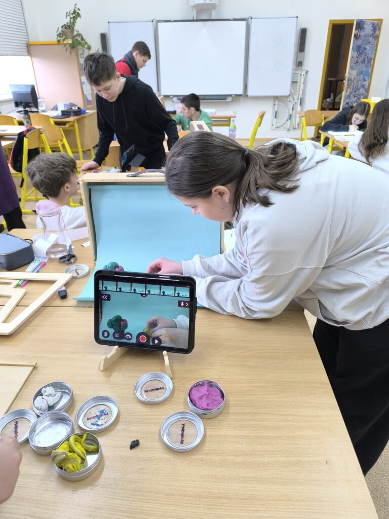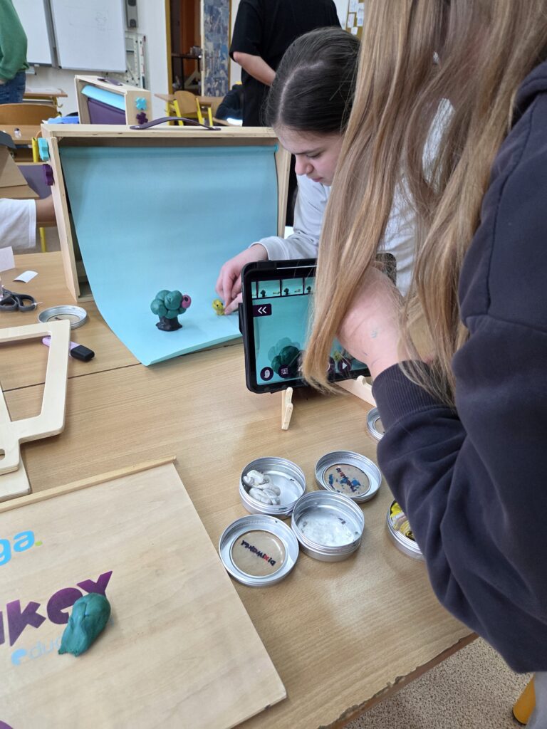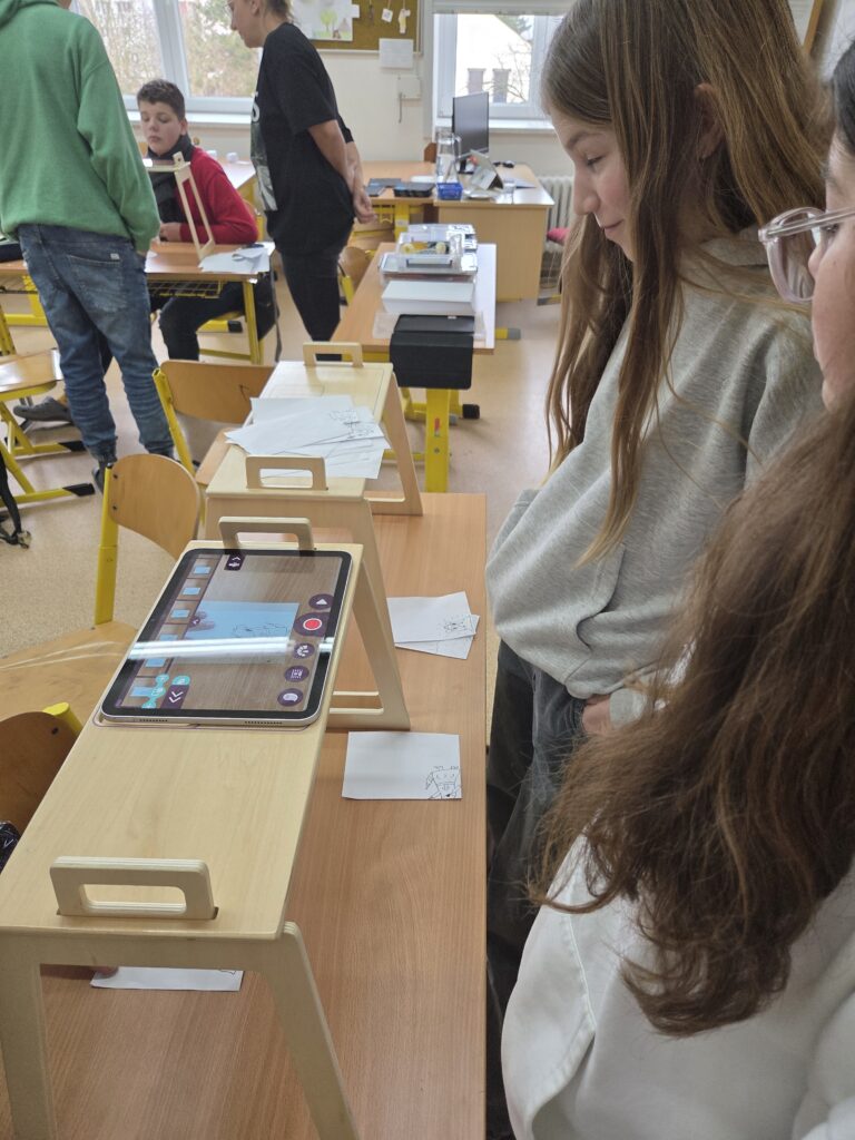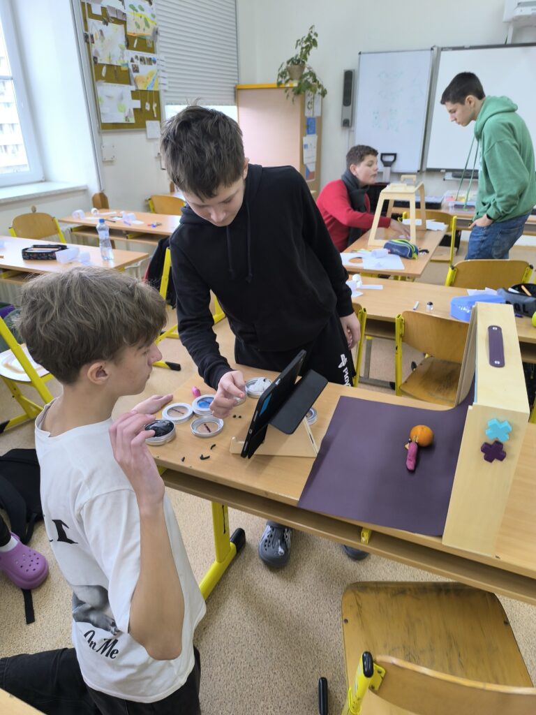 Začali jsme jednoduchou kreslenou animací, při které se postupně vytvářejí jednotlivé obrázky a jejich rychlým promítáním vzniká dojem pohybu. Poté jsme přešli na loutkovou animaci, při níž jsme pracovali s trojrozměrnými postavičkami, které se po malých krocích posouvají a fotografují. Třetí technikou byla plošková animace založená na animování vystřižených papírových postav a objektů. Díky tomu si žáci uvědomili, kolik práce, trpělivosti a kreativity je potřeba k vytvoření i krátkého animovaného filmu.