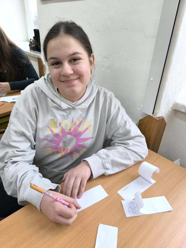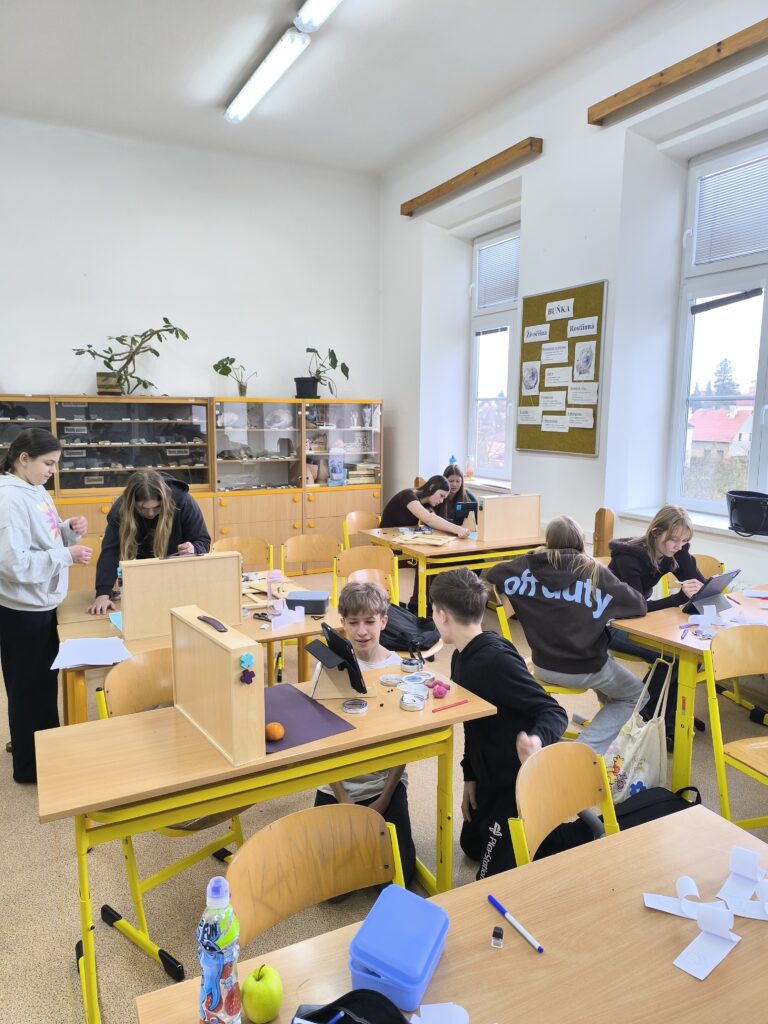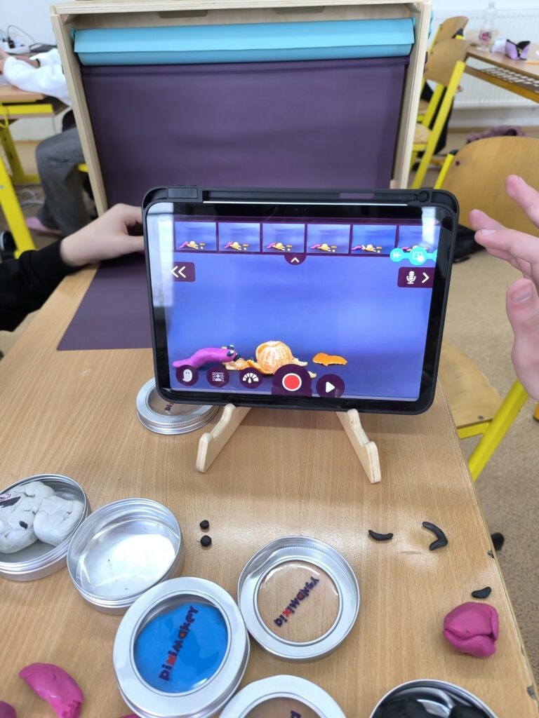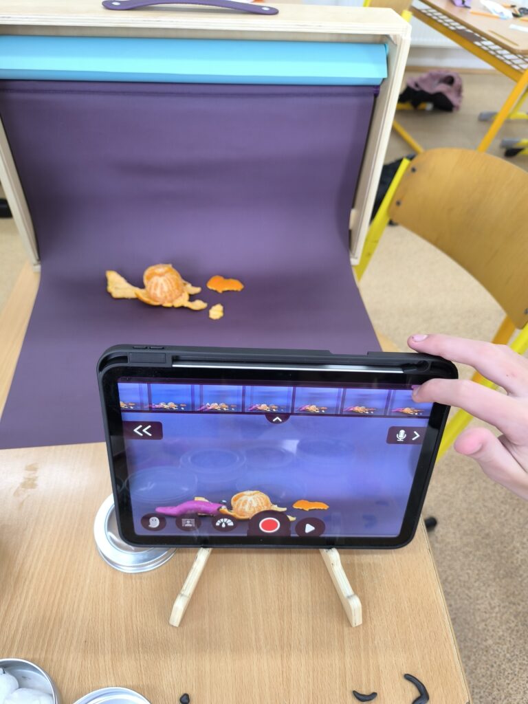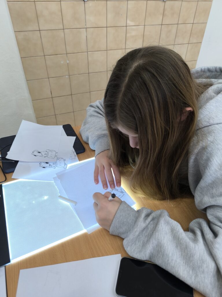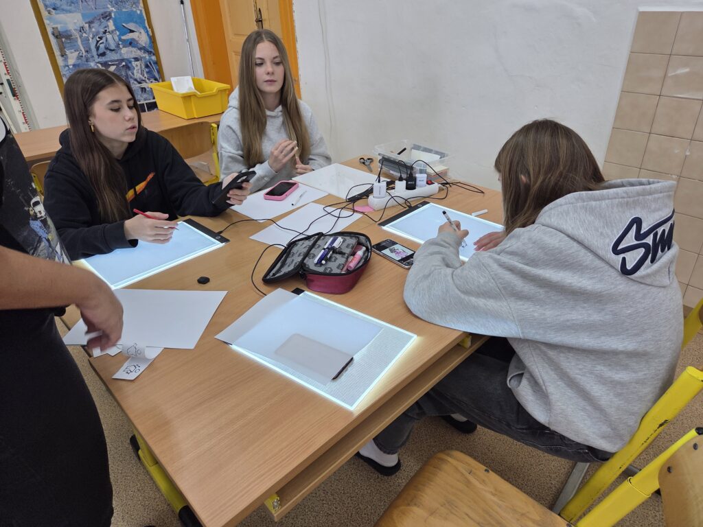 Začali jsme jednoduchou kreslenou animací, při které se postupně vytvářejí jednotlivé obrázky a jejich rychlým promítáním vzniká dojem pohybu. Poté jsme přešli na loutkovou animaci, při níž jsme pracovali s trojrozměrnými postavičkami, které se po malých krocích posouvají a fotografují. Třetí technikou byla plošková animace založená na animování vystřižených papírových postav a objektů. Díky tomu si žáci uvědomili, kolik práce, trpělivosti a kreativity je potřeba k vytvoření i krátkého animovaného filmu.