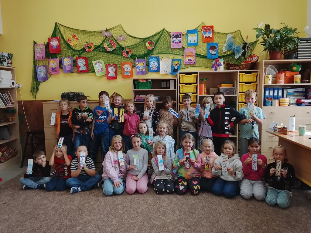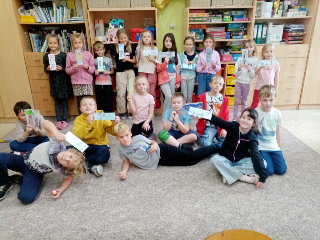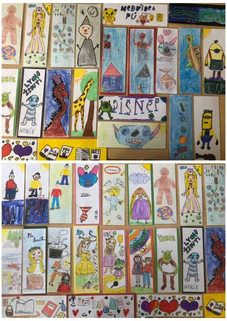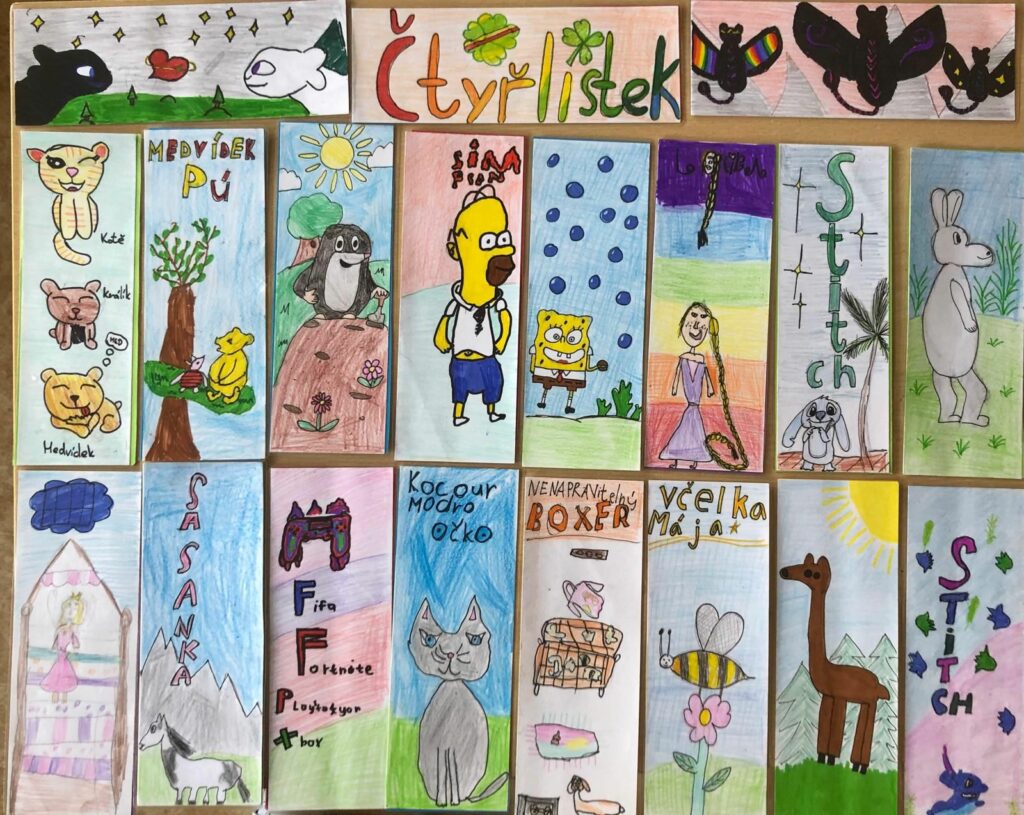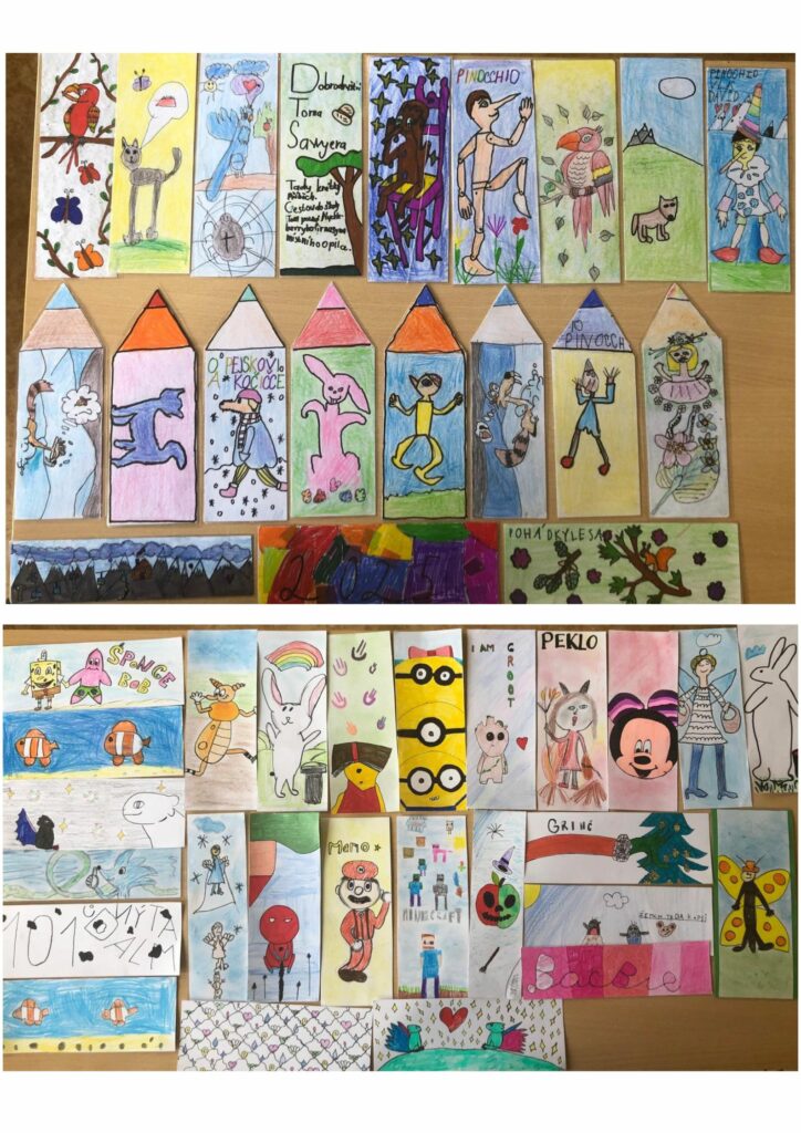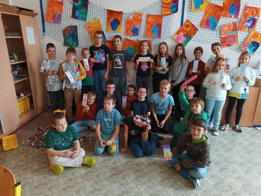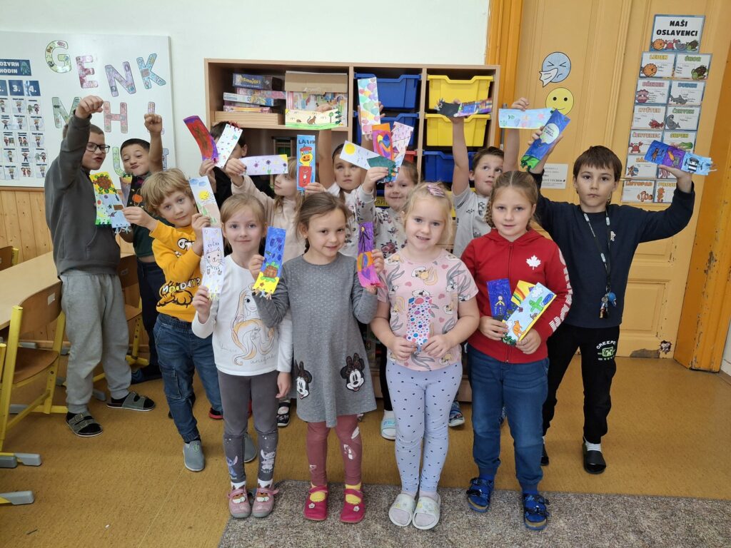 Děti ve školní družině i školním klubu se s nadšením pustily do kresby originálních záložek. Letošní téma dětem umožnilo nahlédnout do světa fantazie, dobrodružství i pohádek. Během tvoření jsme si povídali o knihách, které mají děti nejraději.