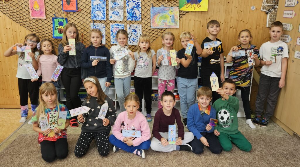 Naše záložky putují do ZŠ Bieloruská v Bratislavě. Na oplátku se těšíme na záložky od našich slovenských kamarádů. Věříme, že taková drobnost, jako je malá záložka, udělá radost a stejně jako nám přinese inspiraci k dalšímu čtení.